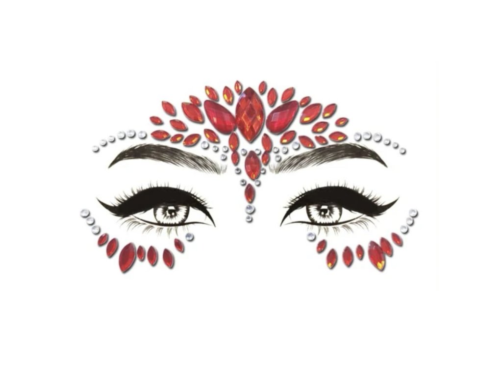 Stick on rhinestones for the face and body are the perfect accessory for a party or festival.