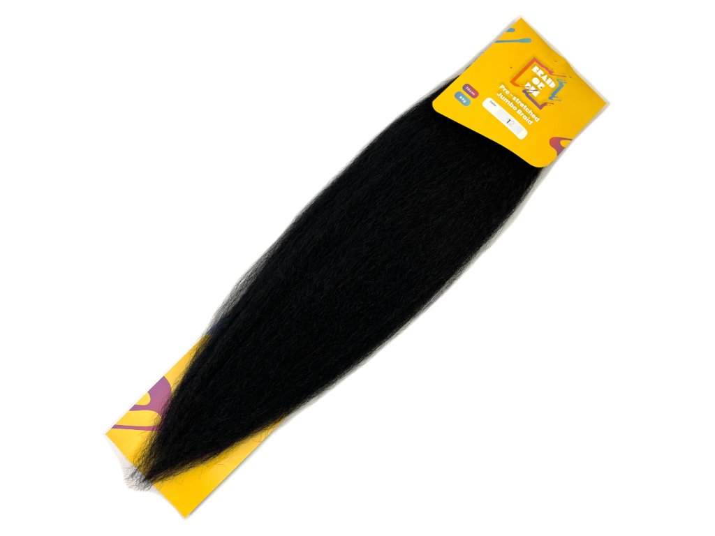 Pre-Stretched 100% Jumbo Braid Kanekalon designed for rasta braids, plaited braids and synthetic dreadlocks in case when you want ending of the braids or dreadlocks to be thinned. It can be used for creating extravagant or loose hair hairstyles. It is called also as Pre-cut, Pre-feathered or Pre-layered.