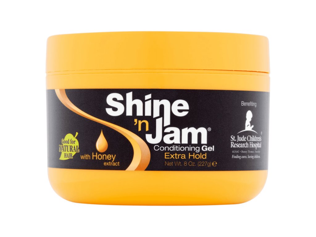 Shine ’n Jam Extra Hold - The BEST gel on the market: free of alcohol, parabens, wax, petrolatum and silicones. This moisturizing, non-flaking gel has a firm, non-greasy hold. Enhanced with Honey Extract to help strengthen hair. Great for soft waves, braids, locks, twists or any style your heart desires!